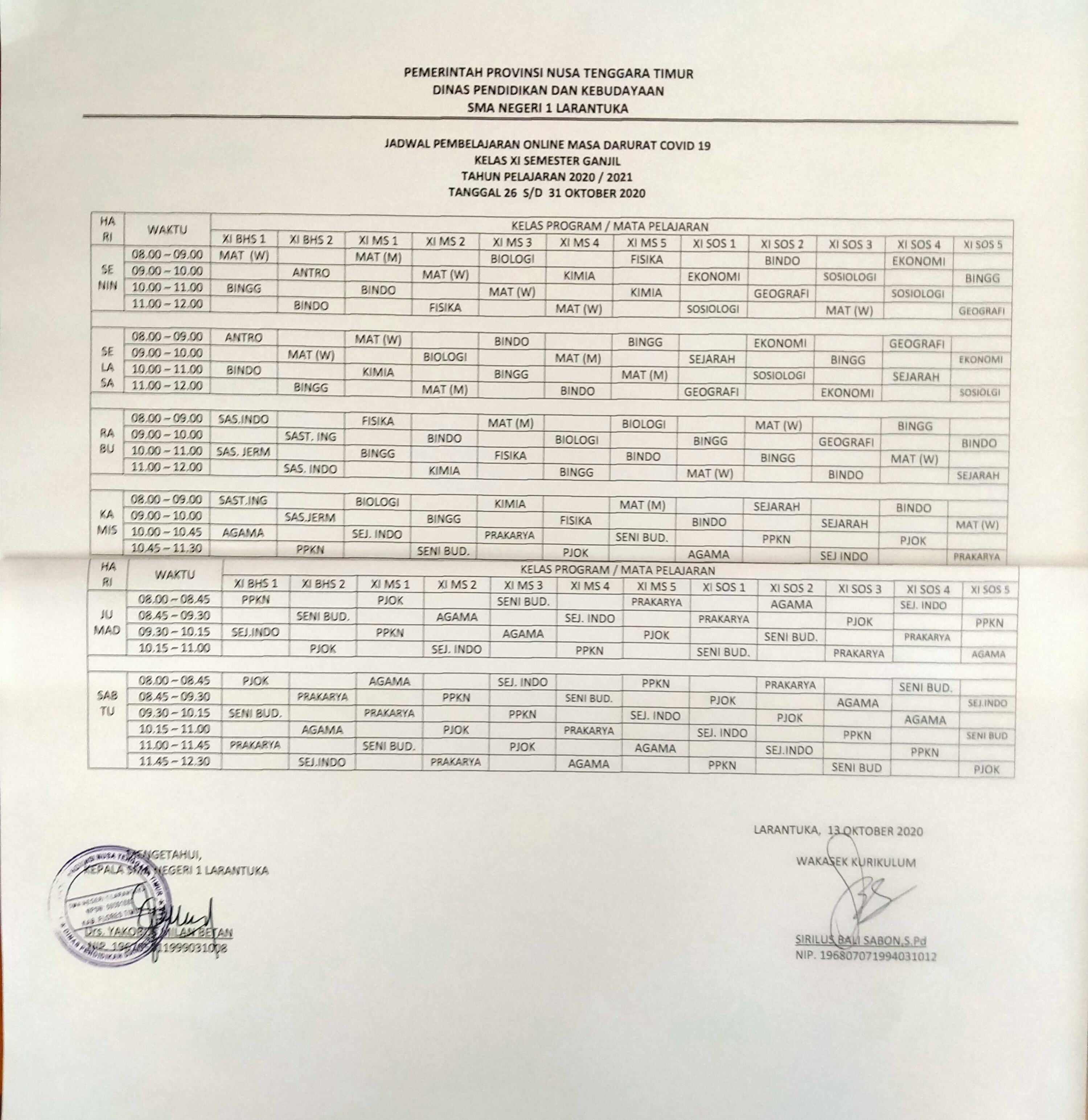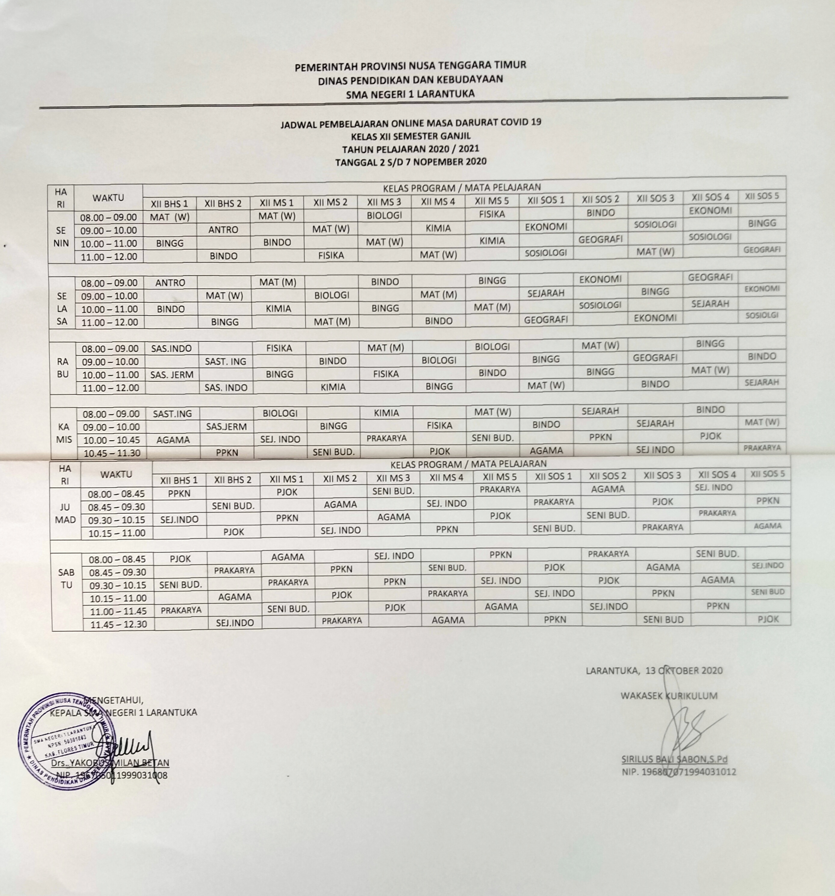 PEMBAGIAN KELAS PESERTA DIDIK BARU SMAN 1 LARANTUKA